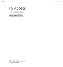 F5 Access is a free application, but requires a valid license on F5 BIG-IP Access Policy Manager. BIG-IP Access Policy Manager must be running version 11.5 or later. Please contact your IT administrator to check if your organization is ready to F5 Access for Windows 10.